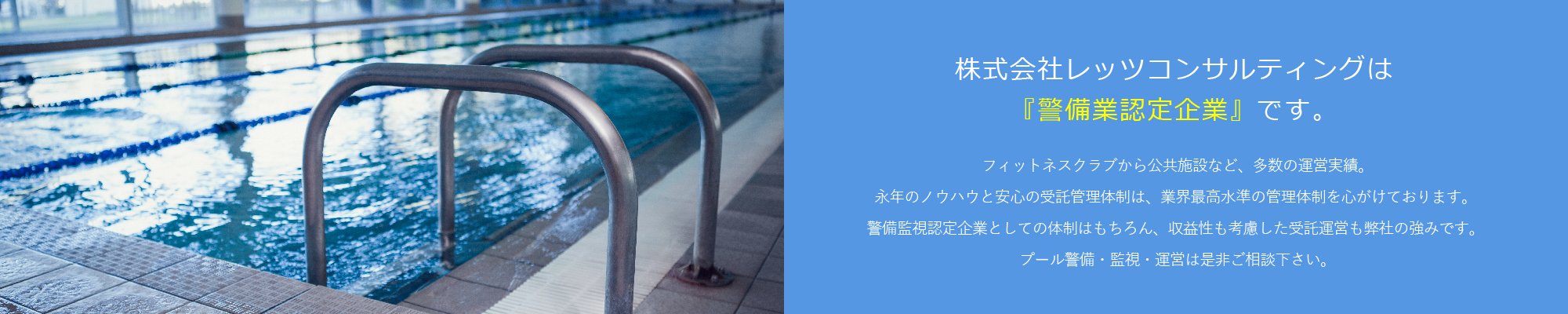警備業認定が必要なプール監視・警備を福岡県内全域にて管理、運営致します。